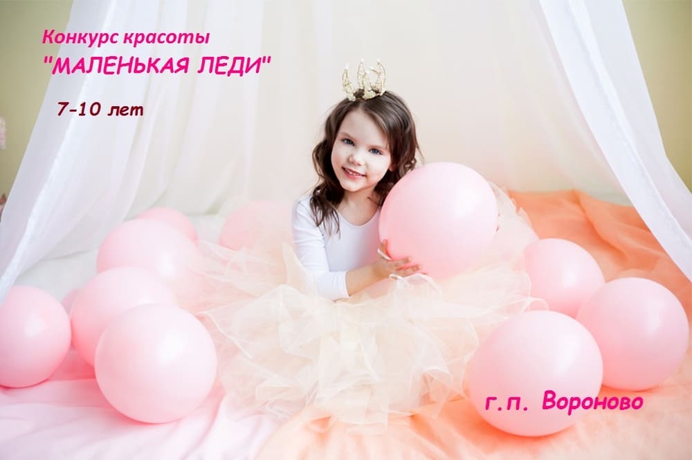 В Вороново состоится ежегодный конкурс красоты «Маленькая Леди». Возрастная категория участниц: 7 – 10 лет. Конкурс будет проходить в пять этапов: дефиле «Представление участниц»; визитка; творческое (домашнее задание) дефиле «Я и спорт», дефиле в бальных платьях «Я Принцесса». Номинации конкурса: Мисс Маленькая Леди; Вице-Мисс Маленькая Леди; Мисс Зрительских симпатий; Мисс Вдохновение; Мисс Артистичность; Мисс Очарование; Мисс Изящество; Мисс Креатив (количество номинаций зависит от количества участниц конкурса).