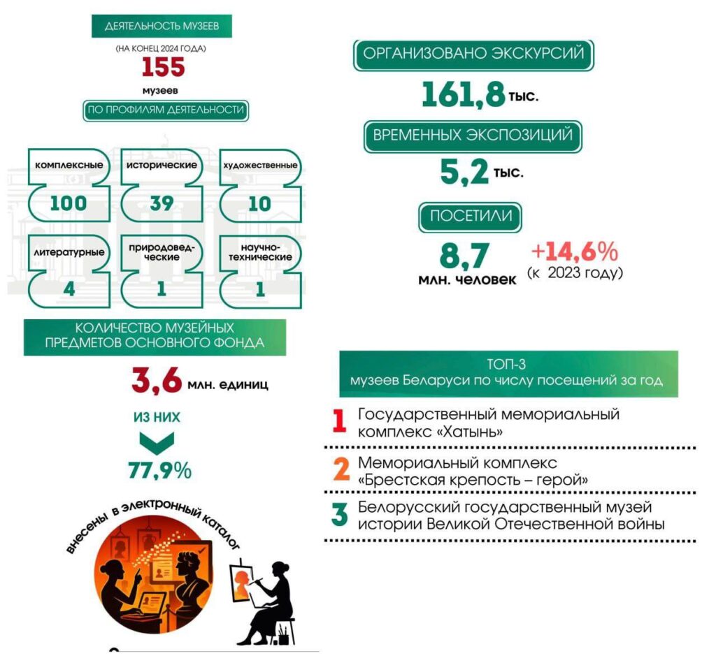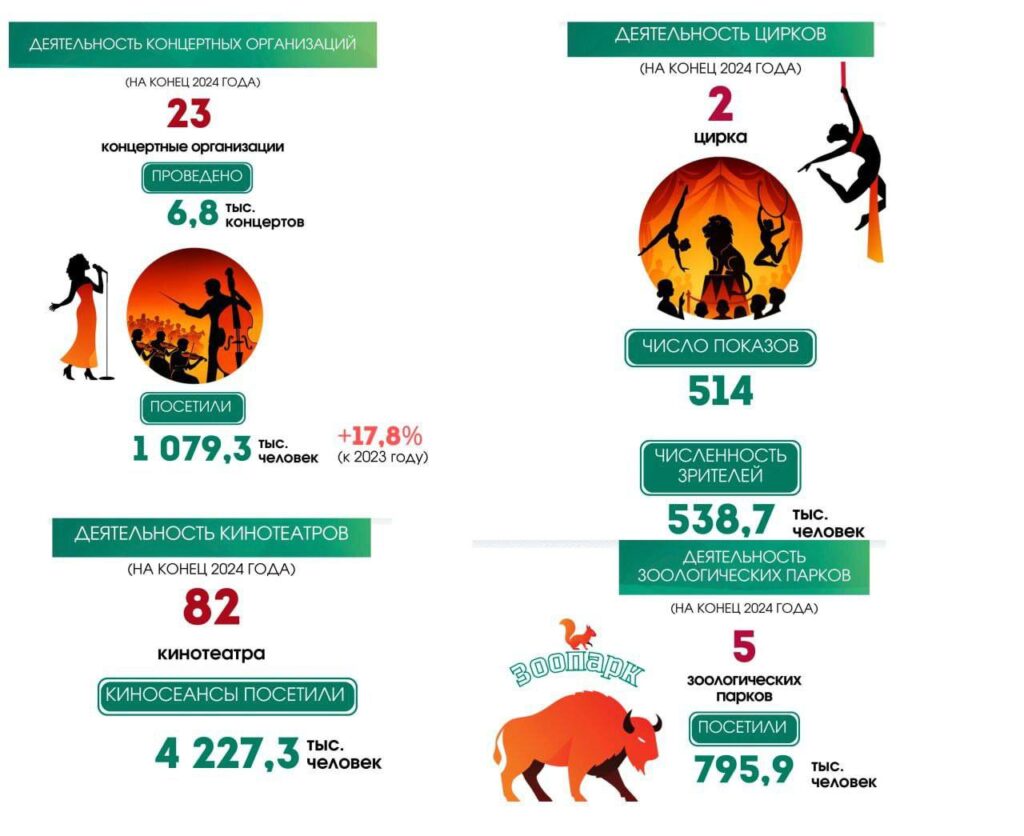 Со словами поздравления ко всем присутствующим обратился помощник Президента Республики Беларусь – инспектор по Гродненской области Константин Викторович Бурак, который в своем выступлении подчеркнул исторический контекст сегодняшнего праздника и важность сферы культуры для общества и государства.]]> В Беларуси более 42 тысяч человек работают в сфере культуры https://kultura-grodno.by/v-belarusi-bolee-42-tysjach-chelovek-rabotajut-v-sfere-kultury/?utm_source=rss&utm_medium=rss&utm_campaign=v-belarusi-bolee-42-tysjach-chelovek-rabotajut-v-sfere-kultury Thu, 09 Oct 2025 16:09:57 +0000 https://kultura-grodno.by/?p=42289 Ко Дню работников культуры, который в Беларуси отмечается во второе воскресенье октября, Белстат представил данные о занятости в отрасли. В 2024 году в сфере культуры трудились 42,4 тыс. человек, сообщает Национальный статистический комитет.