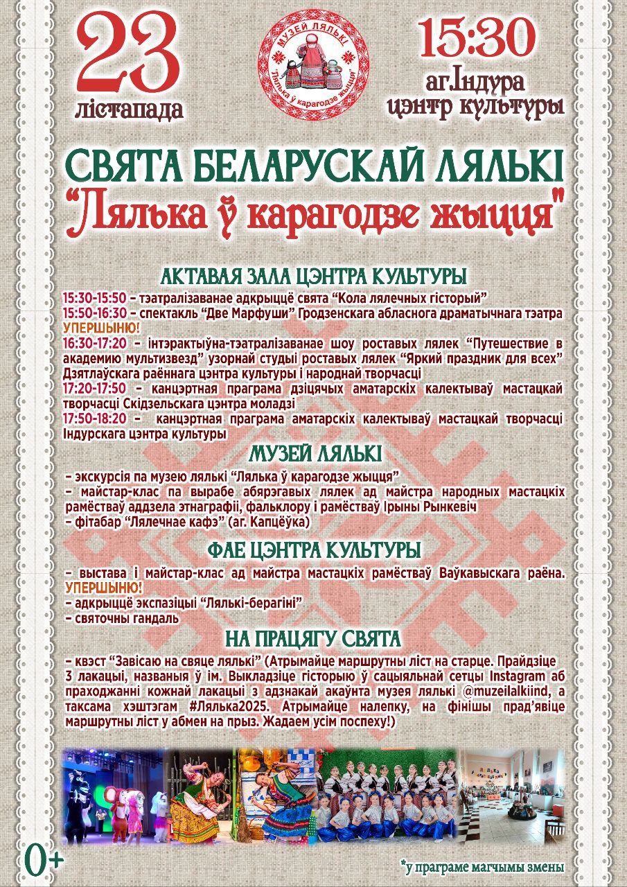 23 лістапада ў 15:30 запрашаем усіх у аграгарадок Індура на свята беларускай лялькі “Лялька ў карагодзе жыцця”!